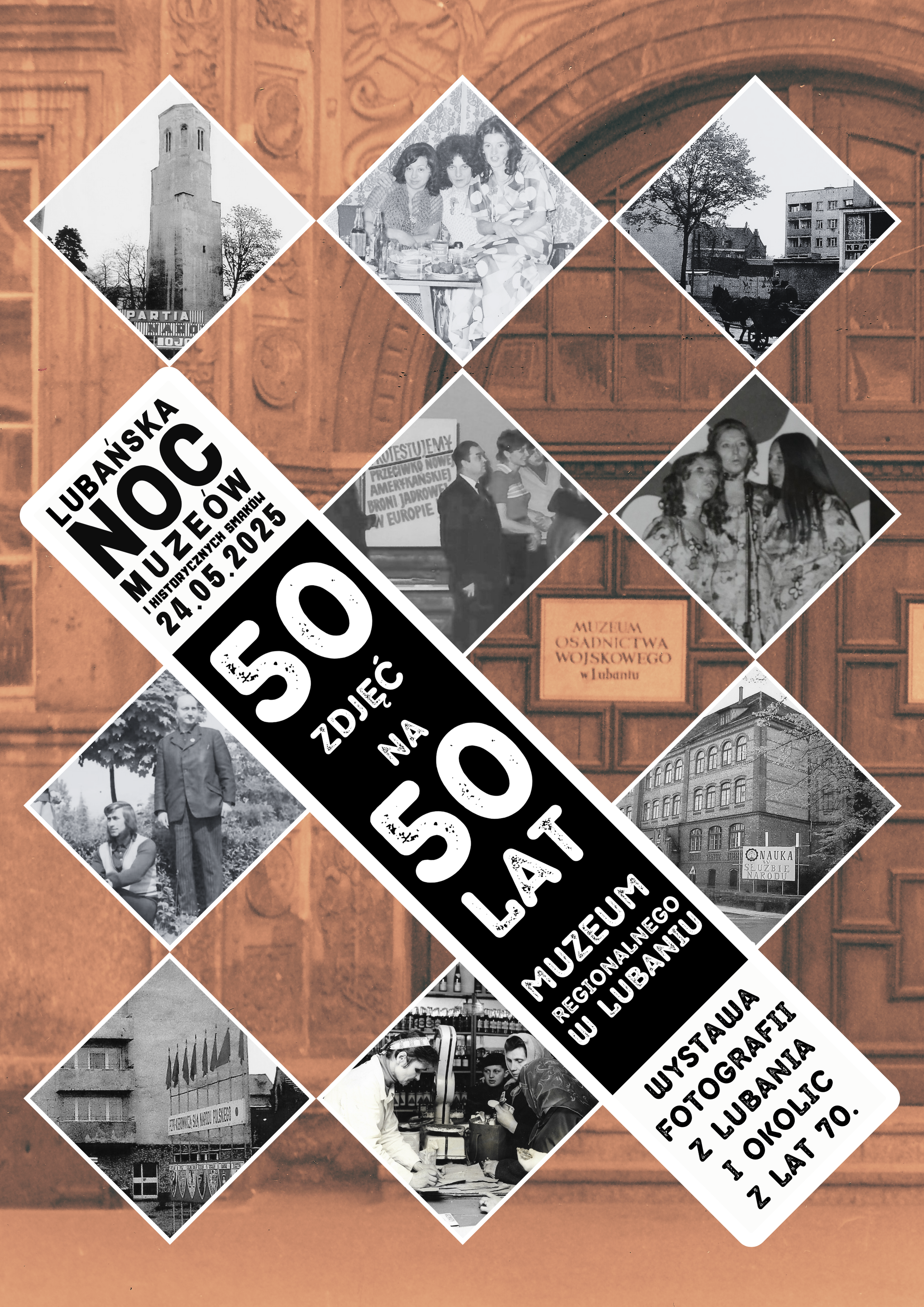 wystawa otwarta na Noc Muzeów w sali ekspozycyjnej na parterze Ratusza, eksponowana w terminie 24.05.2025 - 03.05.2026 (z przerwą wakacyjną związaną z Sudeckim Festiwalem Minerałów). Zobaczymy tu 50 zdjęć z Lubania i okolic z lat 70. XX w. Nie wszystkie postacie sa opisane zachęcamy zatem do uzupełniania kroniki, w której można podzielić się informacjami dotyczącymi zdjęć, czasów powstania Muzeum Osadnictwa Wojskowego czy swoimi historiami z ciekawych lat 70. Kurator wystawy: Milena Sochańska