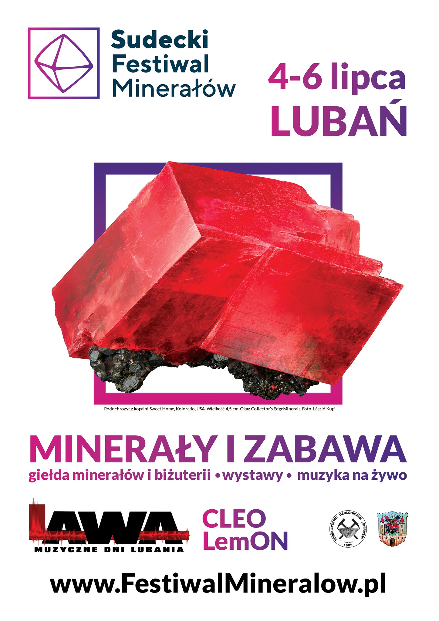 W tym roku na plakacie Sudeckiego Festiwalu Minerałów znajdziecie niesamowite zdjęcie rodochrozytu z kopalni Sweet Home (Kolorado, USA), a utorstwa László Kupi ( https://www.finemineralphotography.com ). Prawda, że przykuwa uwagę?