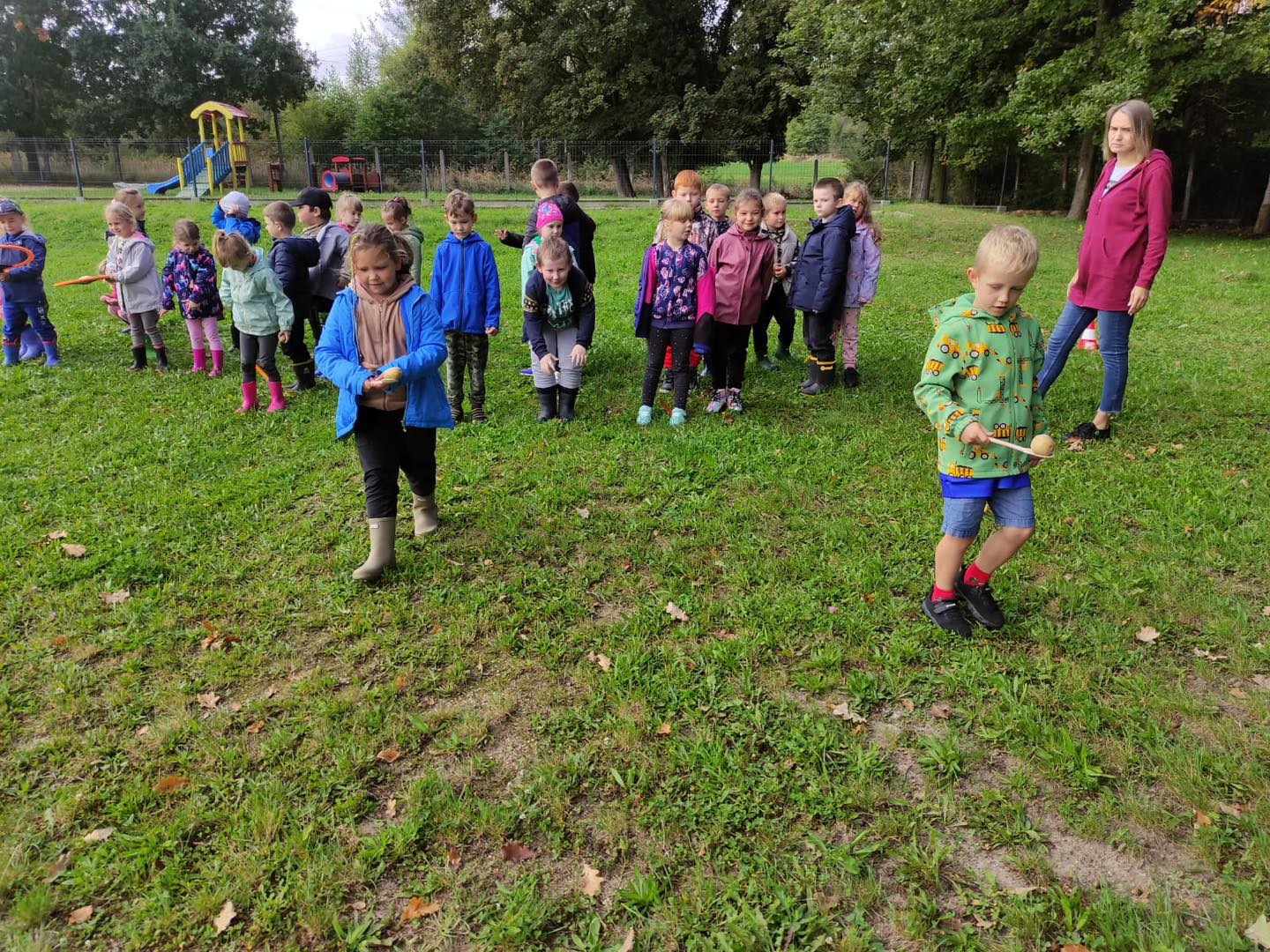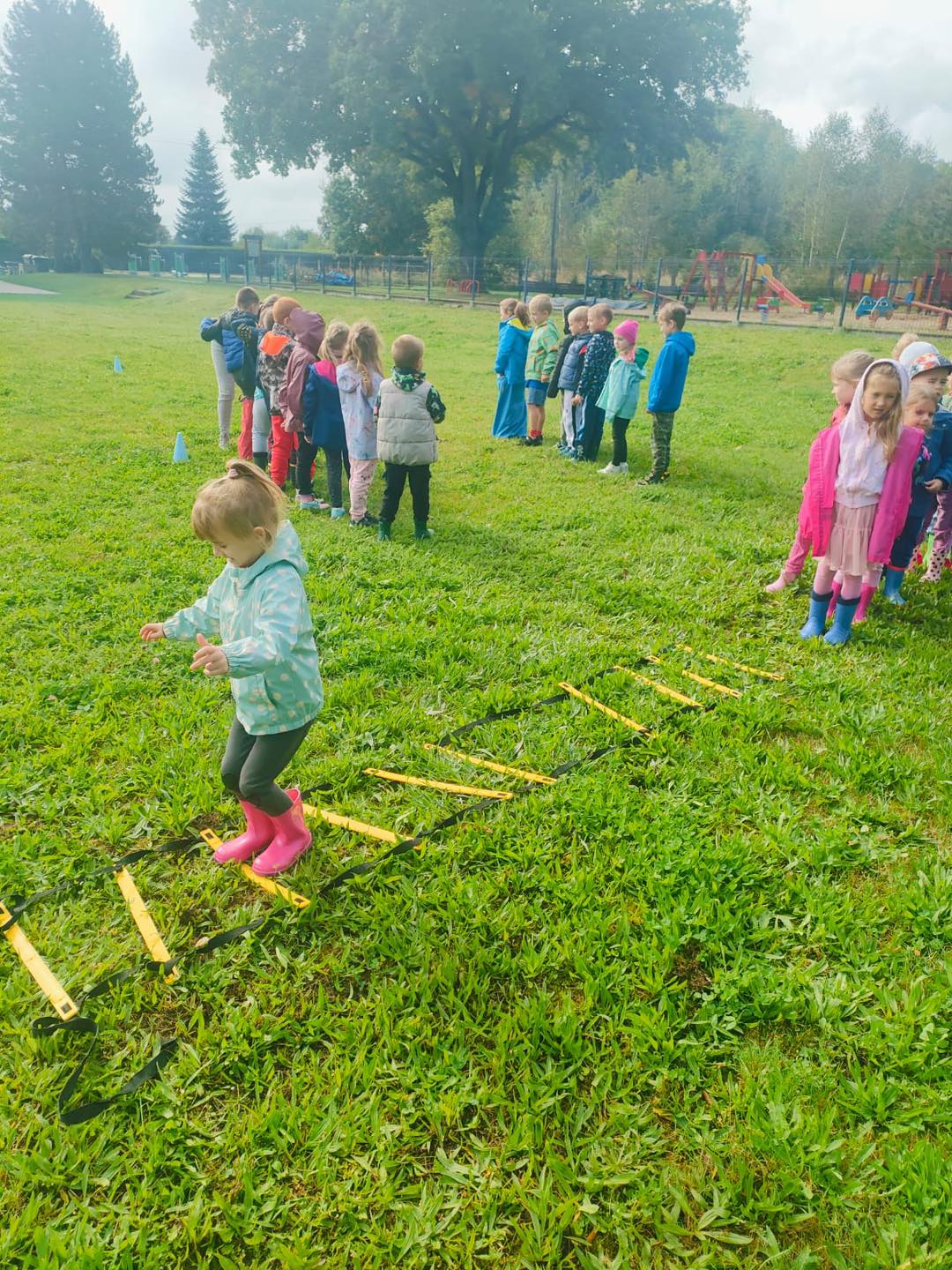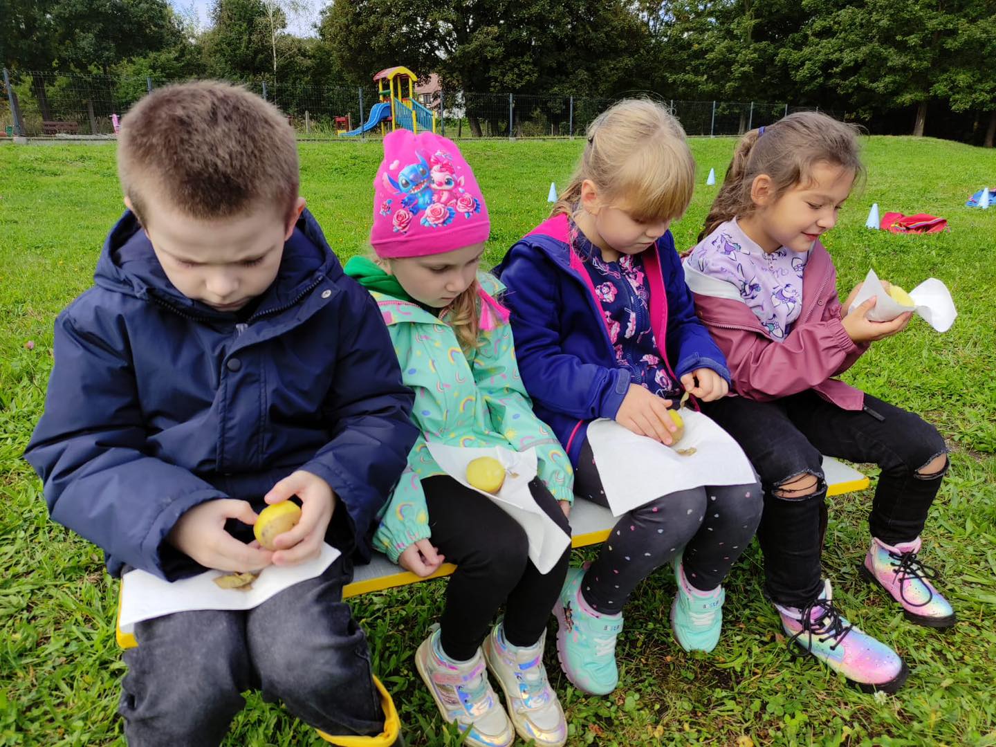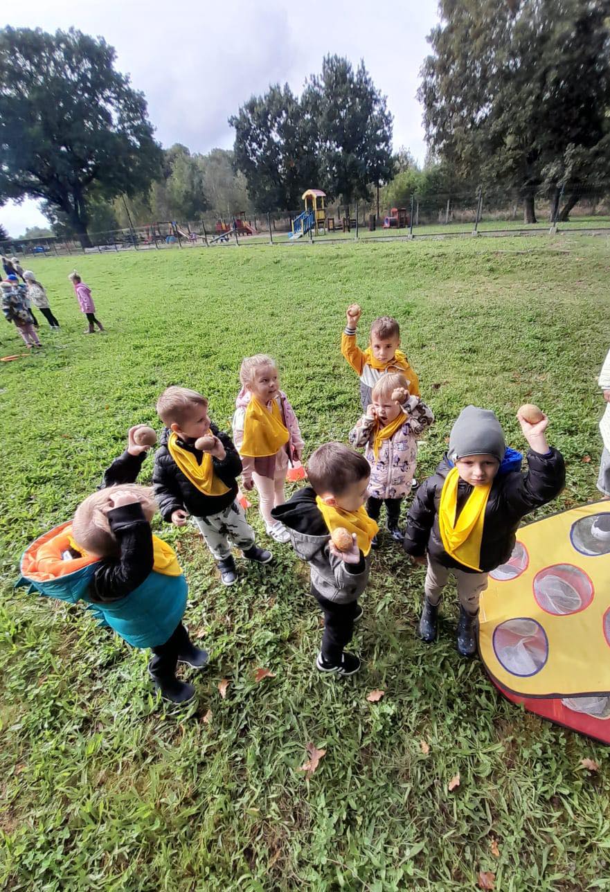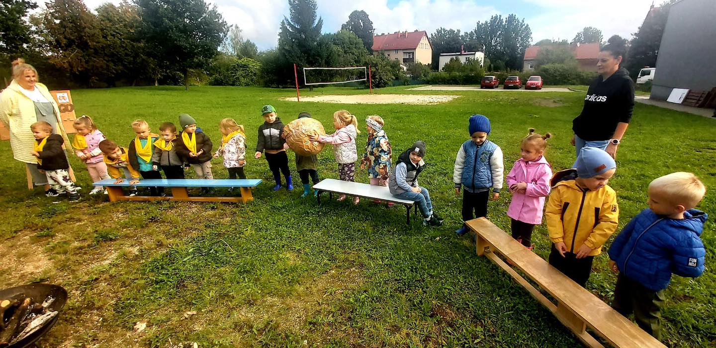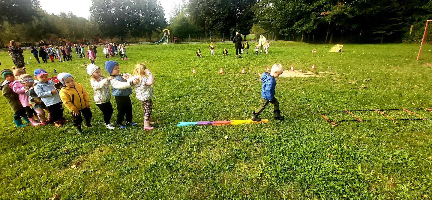 Nie zabrakło torów przeszkód, z którymi nawet maluszki świetnie sobie poradziły. Były zabawy muzyczne przy ognisku, a na koniec zjedliśmy pyszne ziemniaczki z ogniska.