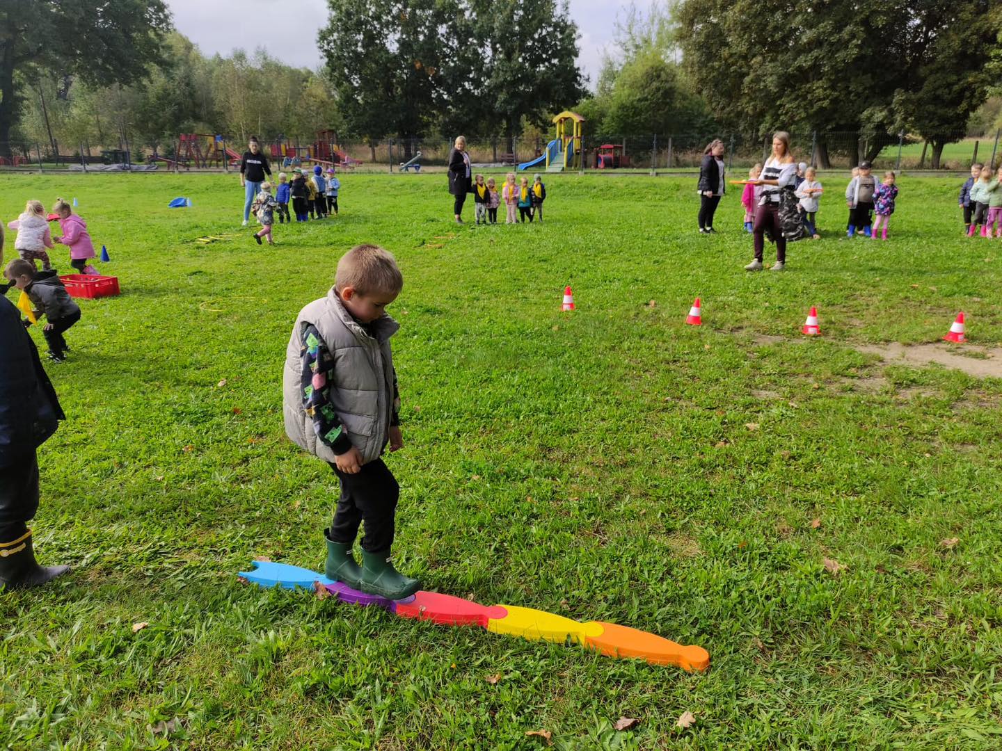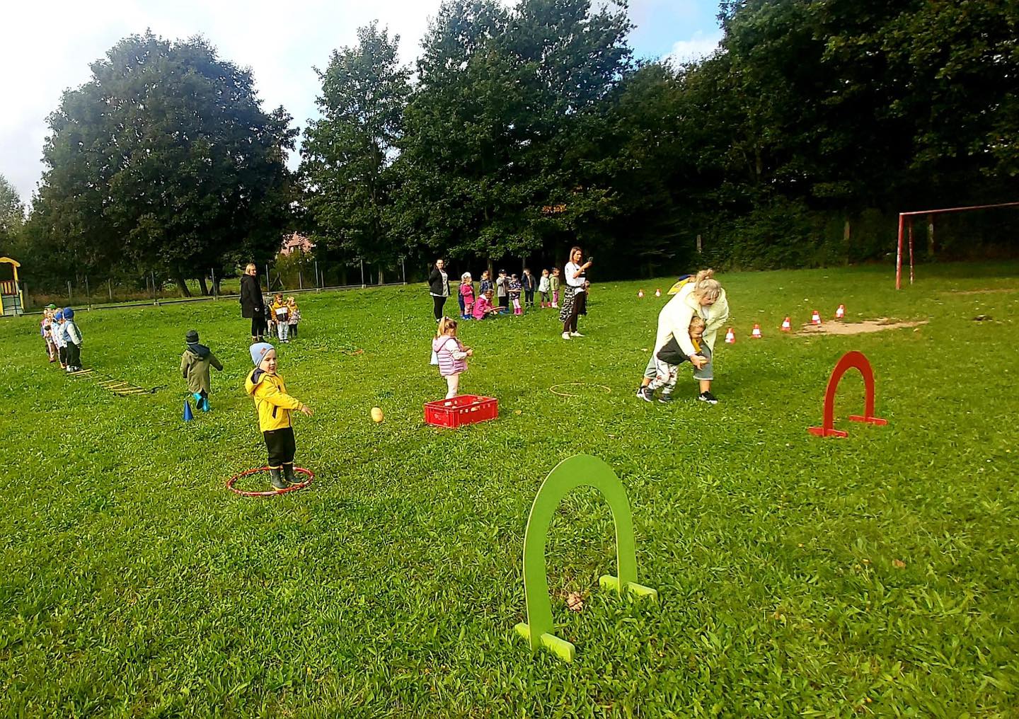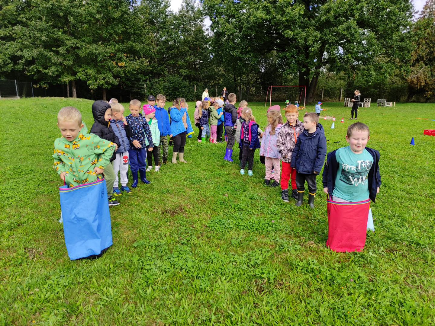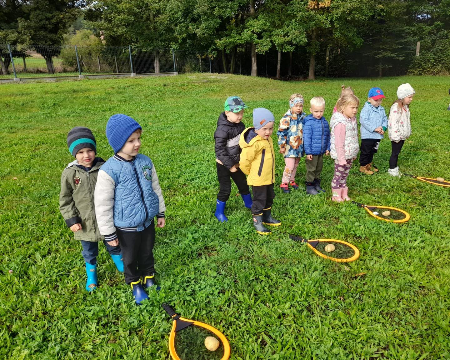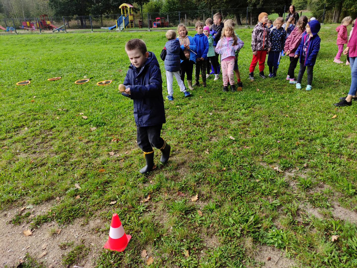 Nie zabrakło torów przeszkód, z którymi nawet maluszki świetnie sobie poradziły. Były zabawy muzyczne przy ognisku, a na koniec zjedliśmy pyszne ziemniaczki z ogniska.