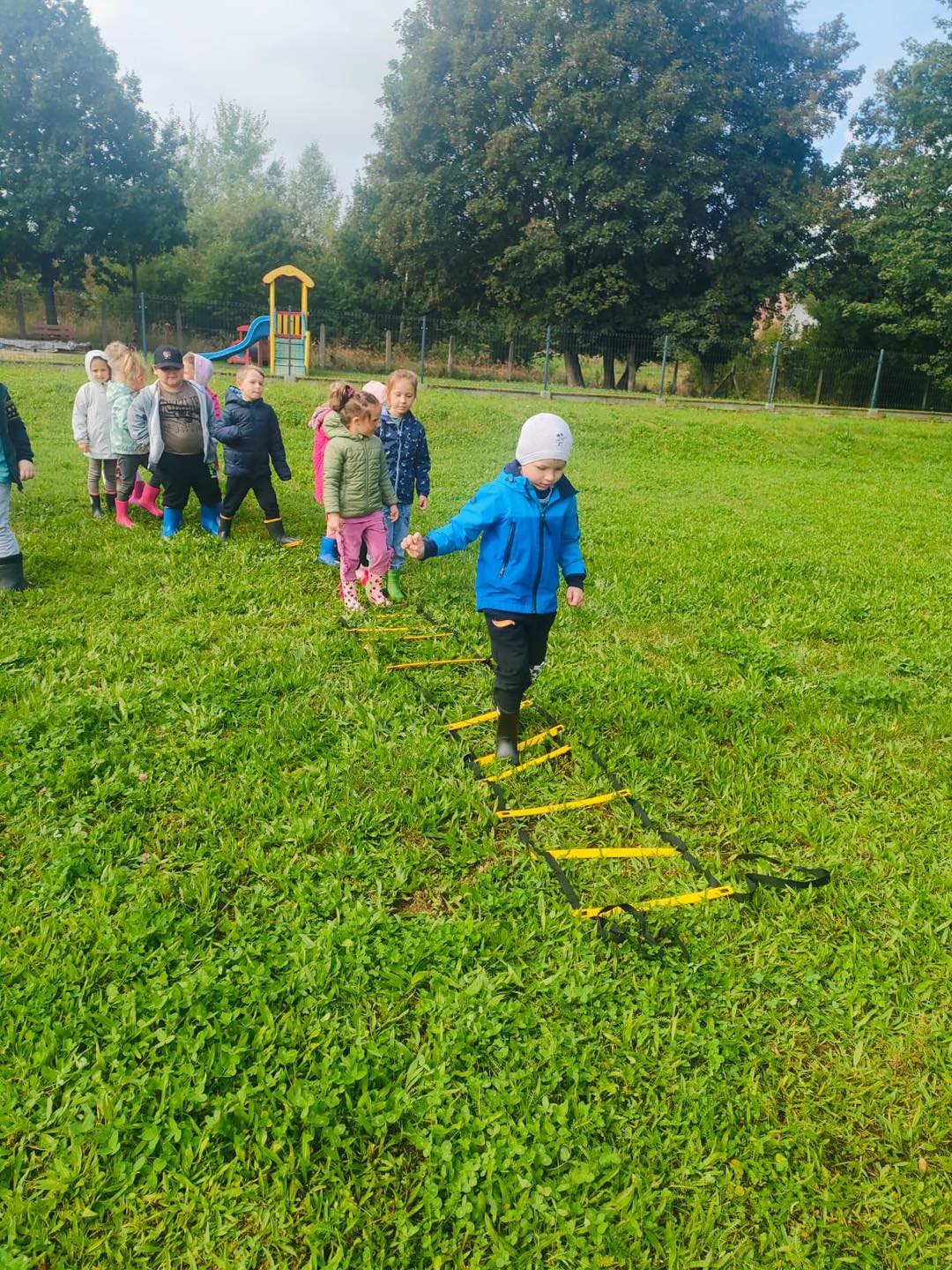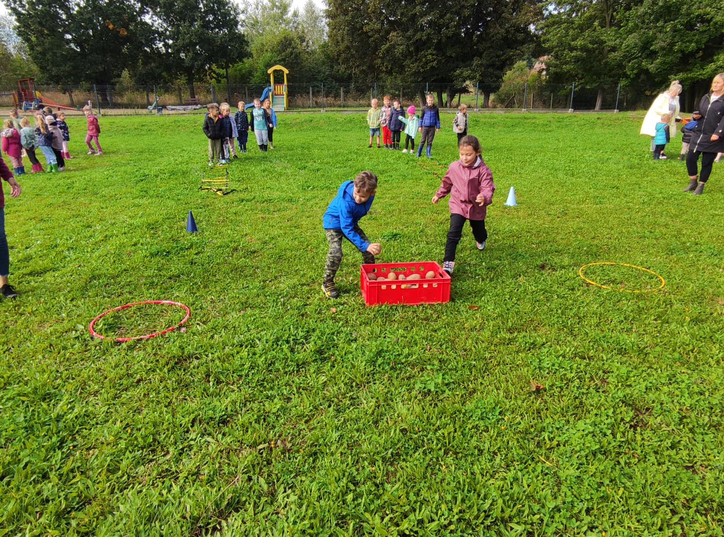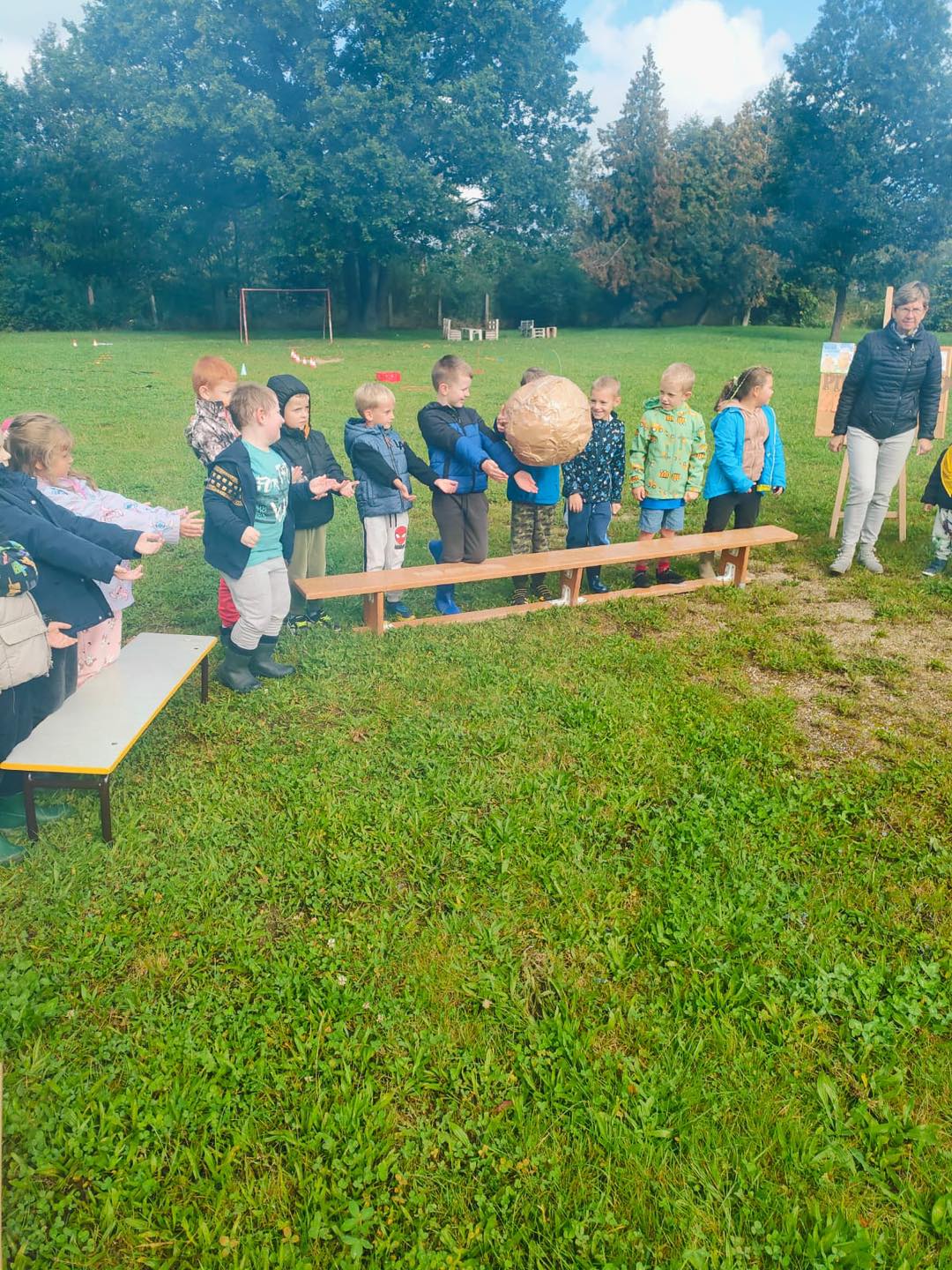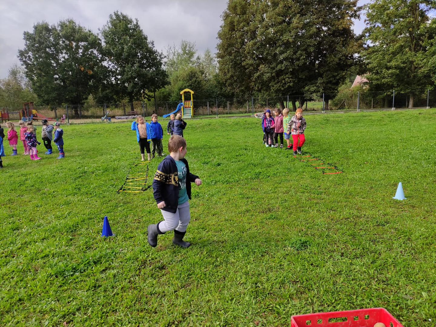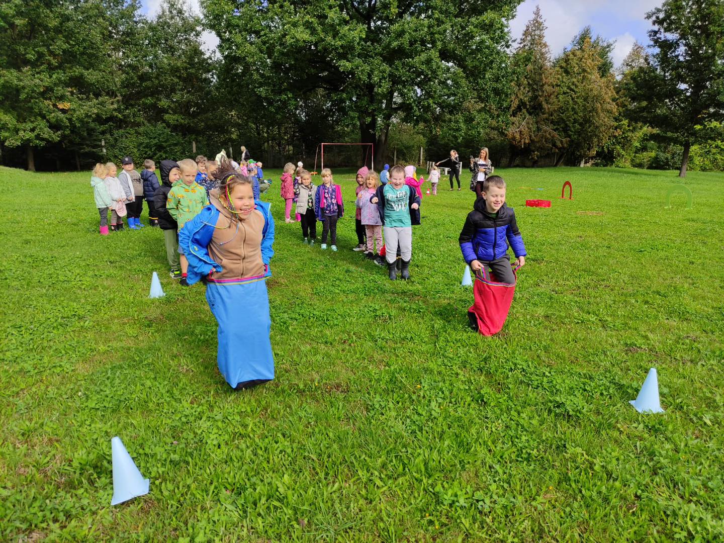 Nie zabrakło torów przeszkód, z którymi nawet maluszki świetnie sobie poradziły. Były zabawy muzyczne przy ognisku, a na koniec zjedliśmy pyszne ziemniaczki z ogniska.