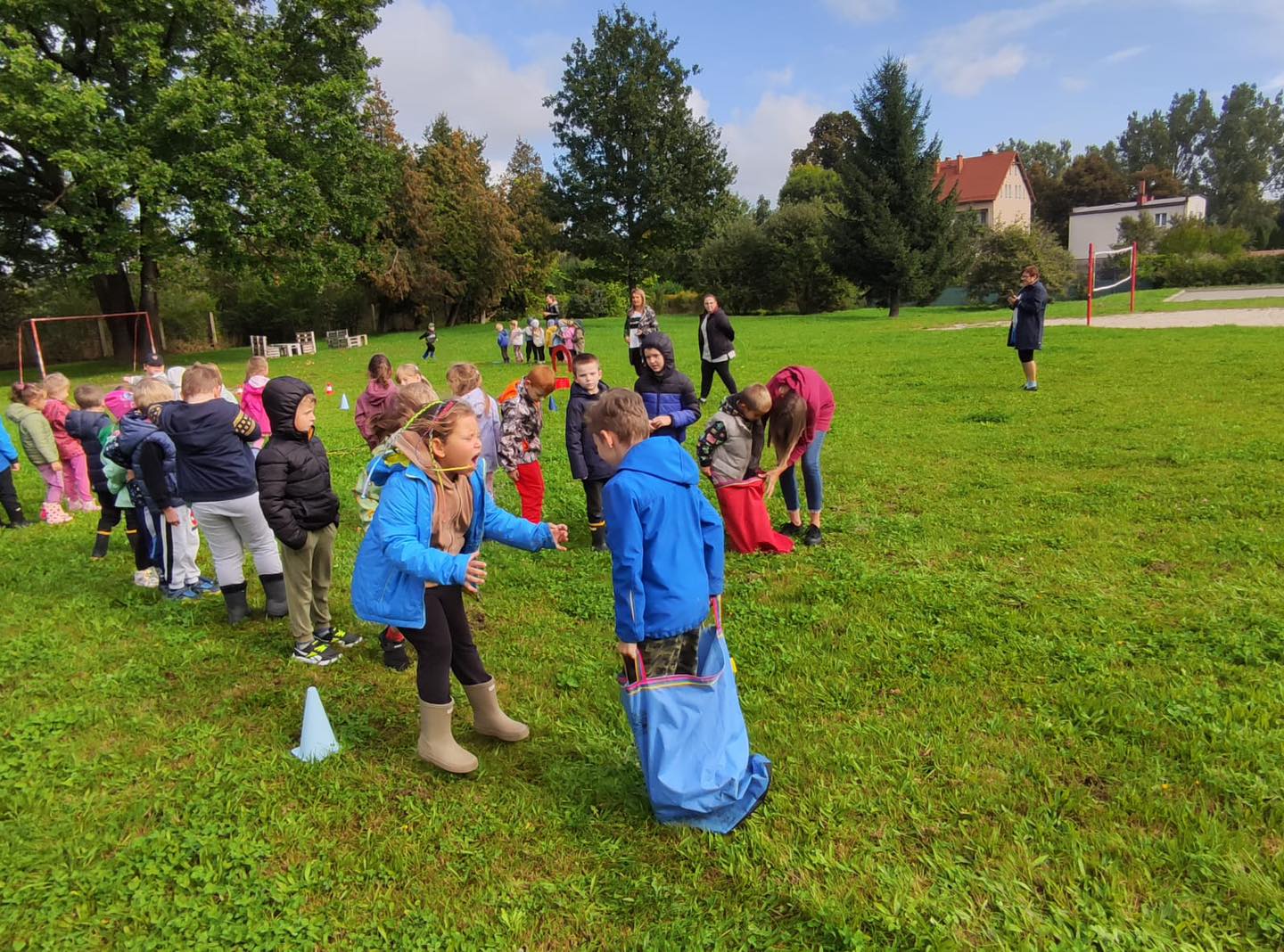 Z tej okazji zebraliśmy się na podwórku, aby wesoło i na sportowo uczcić tę okoliczność.