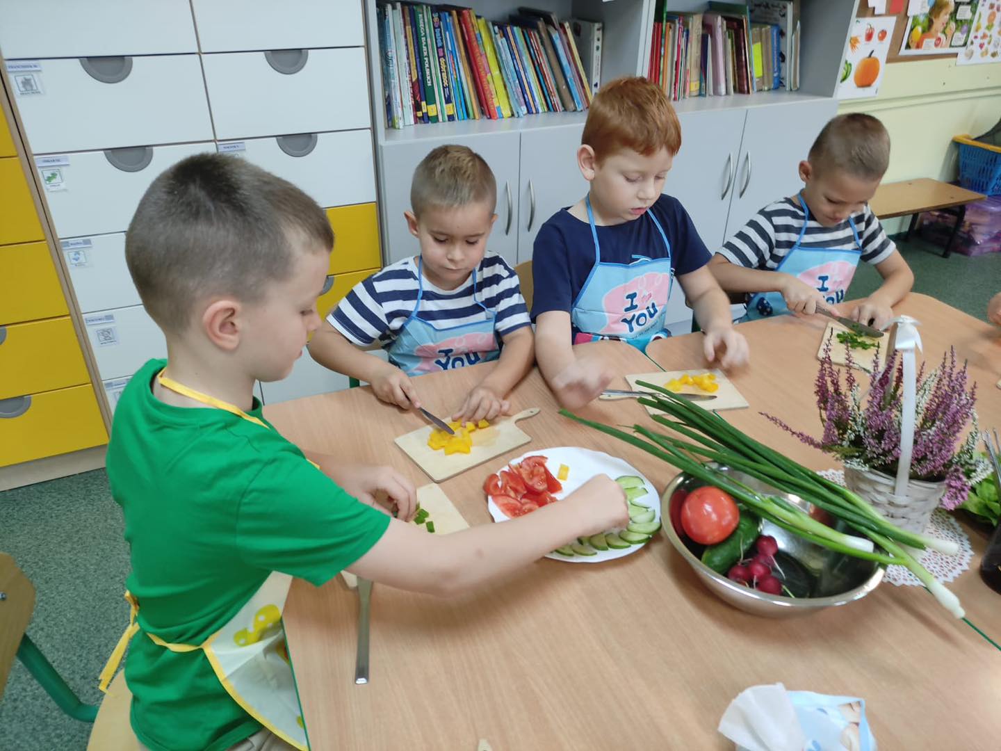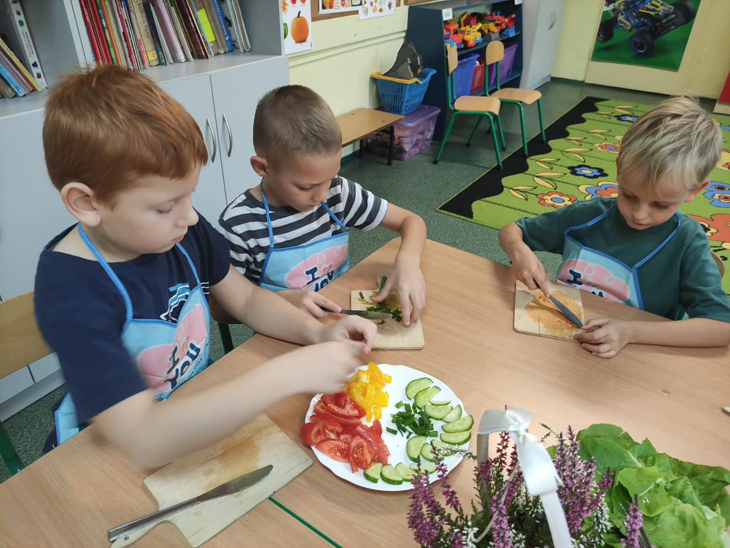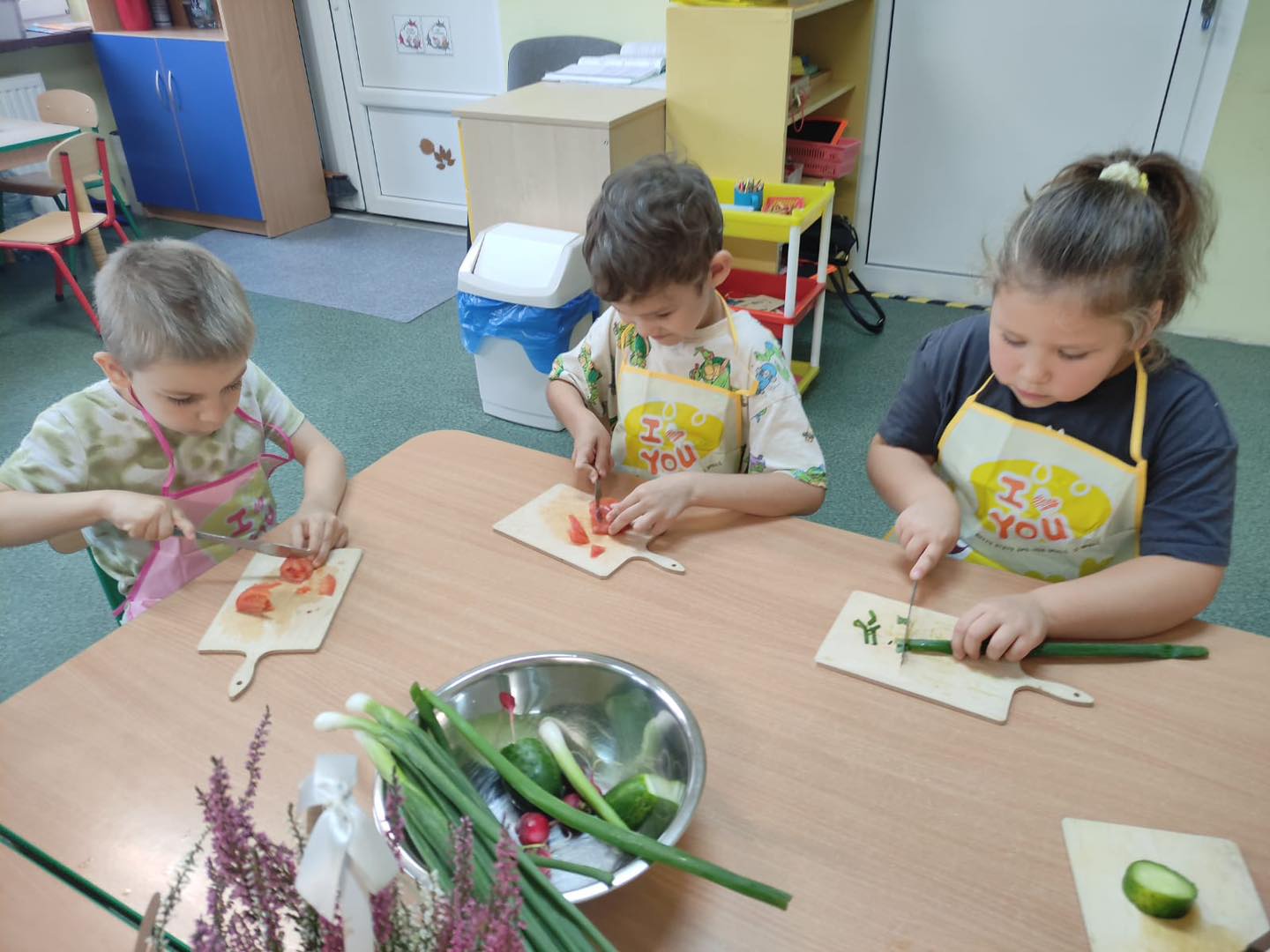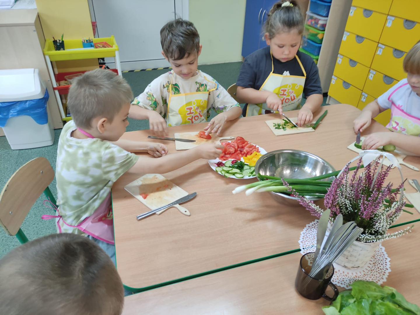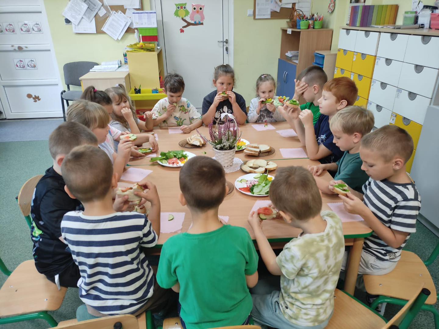 Dzieci 6- letnie wzięły aktywny udział w warsztatach kulinarnych. Samodzielnie komponowały kanapki z warzyw według własnego uznania. Były kolorowe i pyszne! Natomiast 5-latki przygotowały pyszny, zdrowy sok jabłkowo-marchewkowy.