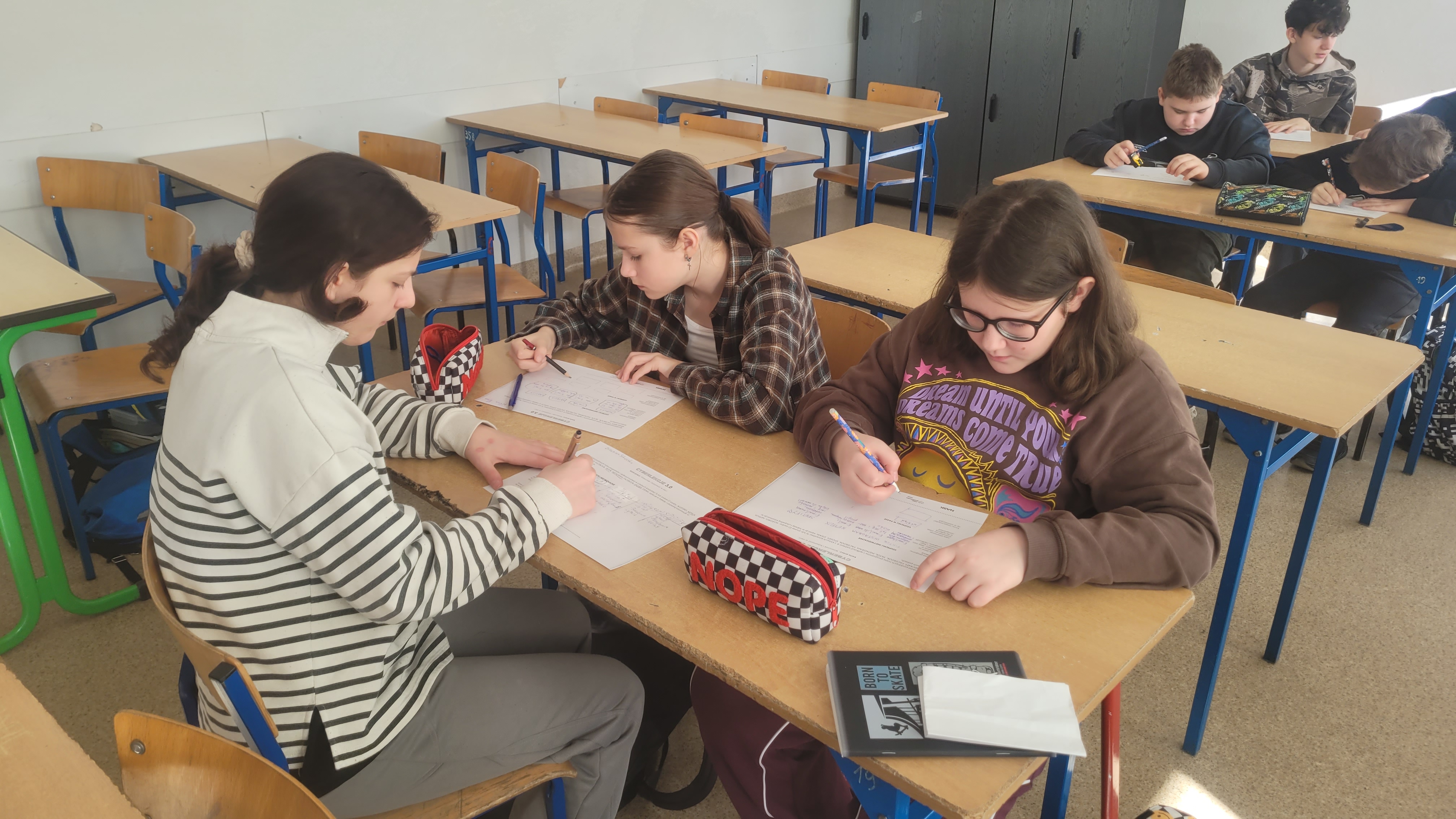 Starsze klasy rozpoczęły zajęcia od ćwiczenia „Dane osobowe – czy nie?”. Uczniowie otrzymali kartki z różnymi informacjami, takimi jak imię, adres, ulubiony kolor czy numer PESEL. Ich zadaniem było podzielenie ich na trzy kategorie: dane osobowe, dane wrażliwe oraz informacje, które można podać publicznie. Ćwiczenie zakończyło się wspólną rozmową o tym, dlaczego niektóre dane wymagają szczególnej ochrony.