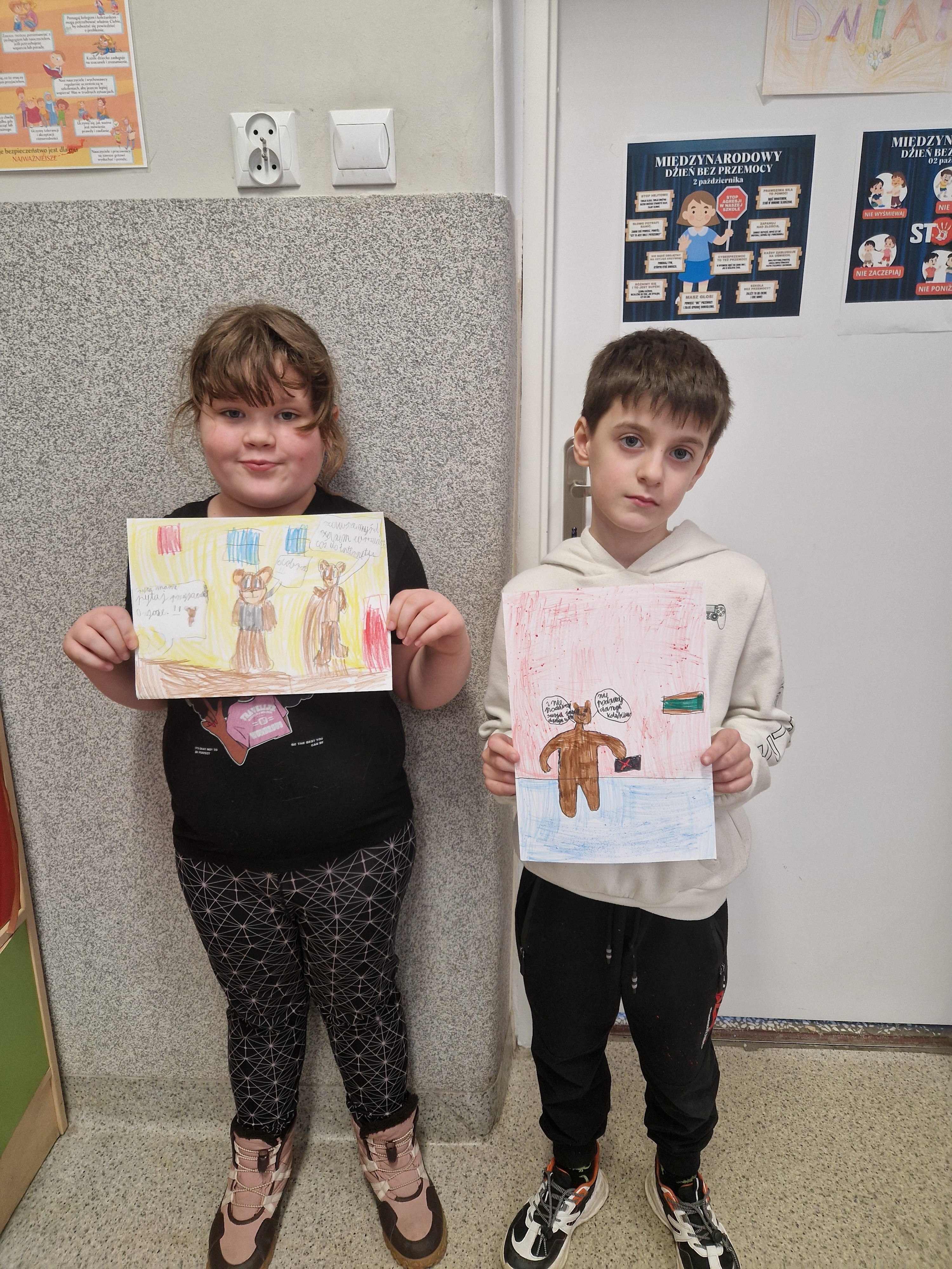 Podsumowaniem zajęć było zadanie plastyczne – uczniowie narysowali siebie jako „Strażników Danych Osobowych”, pokazując w ten sposób, że każdy z nas może dbać o bezpieczeństwo swoich informacji.