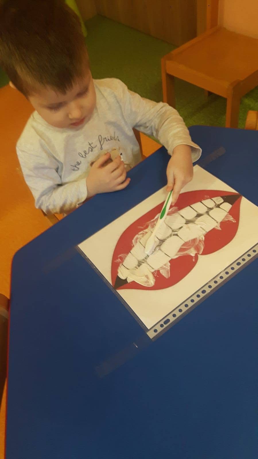 Nasze Biedroneczki razem z Pszczółkami miały zajęcia z okazji Dnia Dentysty. Zajecia miały na celu kształtowanie podstawowych nawyków higieny jamy ustnej.