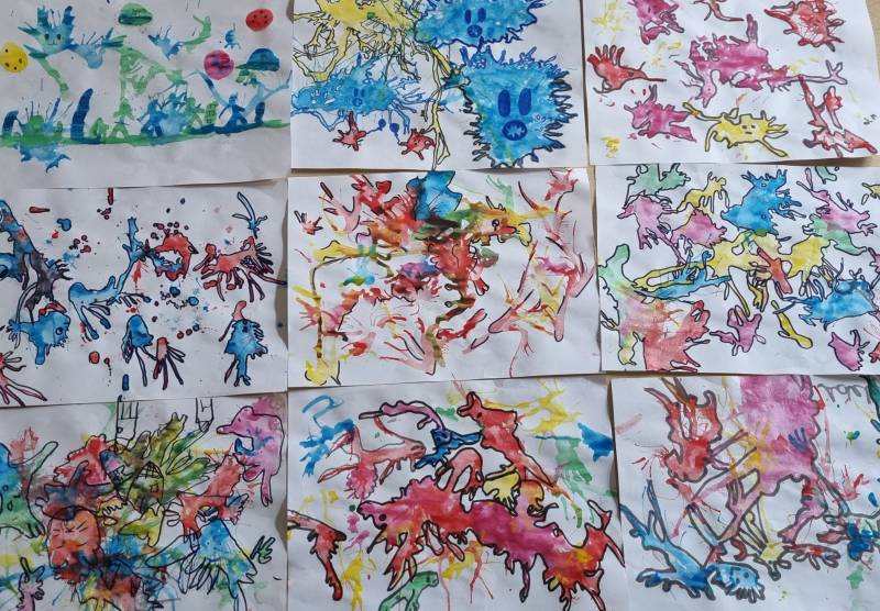 Wystarczył kleks farby i mocne dmuchnięcie przez słomkę, żeby na kartkach zamieszkały te wesołe stwory. Malowanie przez słomkę to nie tylko świetna zabawa plastyczna, ale przede wszystkim genialne ćwiczenie oddechowe.