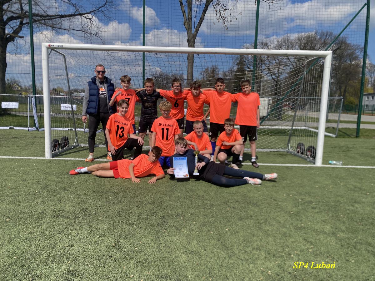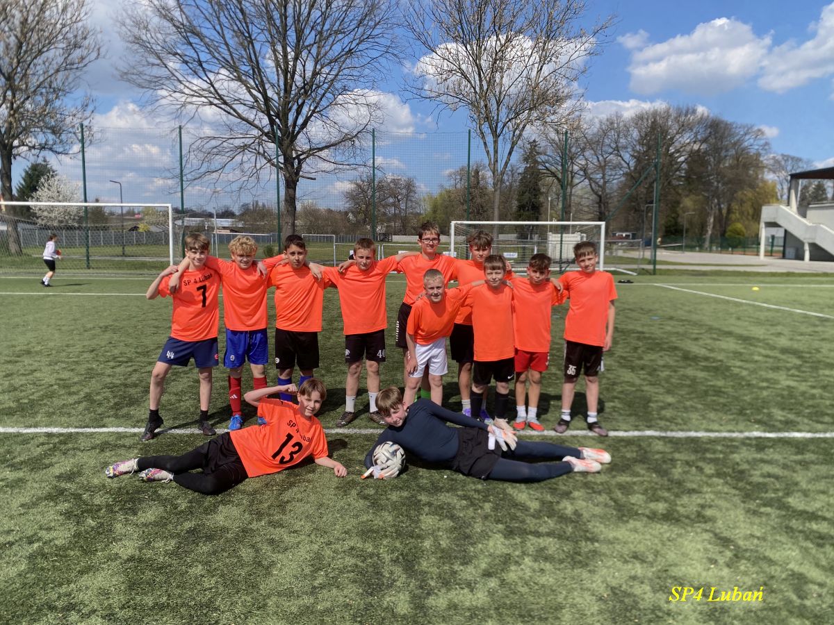 Nasi chłopcy po zaciętych meczach grupowych zakwalifikowali się do półfinału, gdzie pokonali szkołę z Pisarzowic (3:1). Emocjonujący finał rozegrał się pomiędzy SP4 i SP2 Lubań. W rzutach karnych nasi chłopcy pokonali drużynę ze Szkoły Podstawowej nr 2 i zostali Mistrzami Powiatu