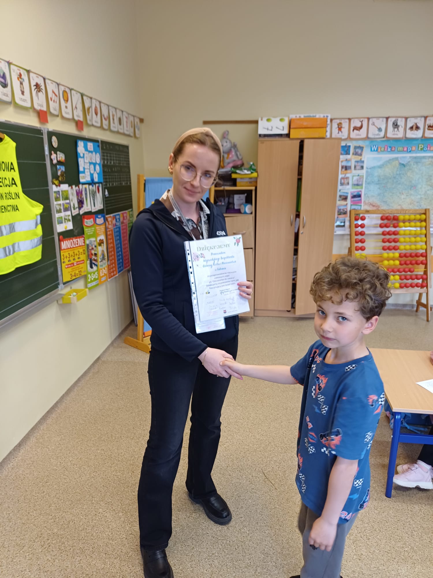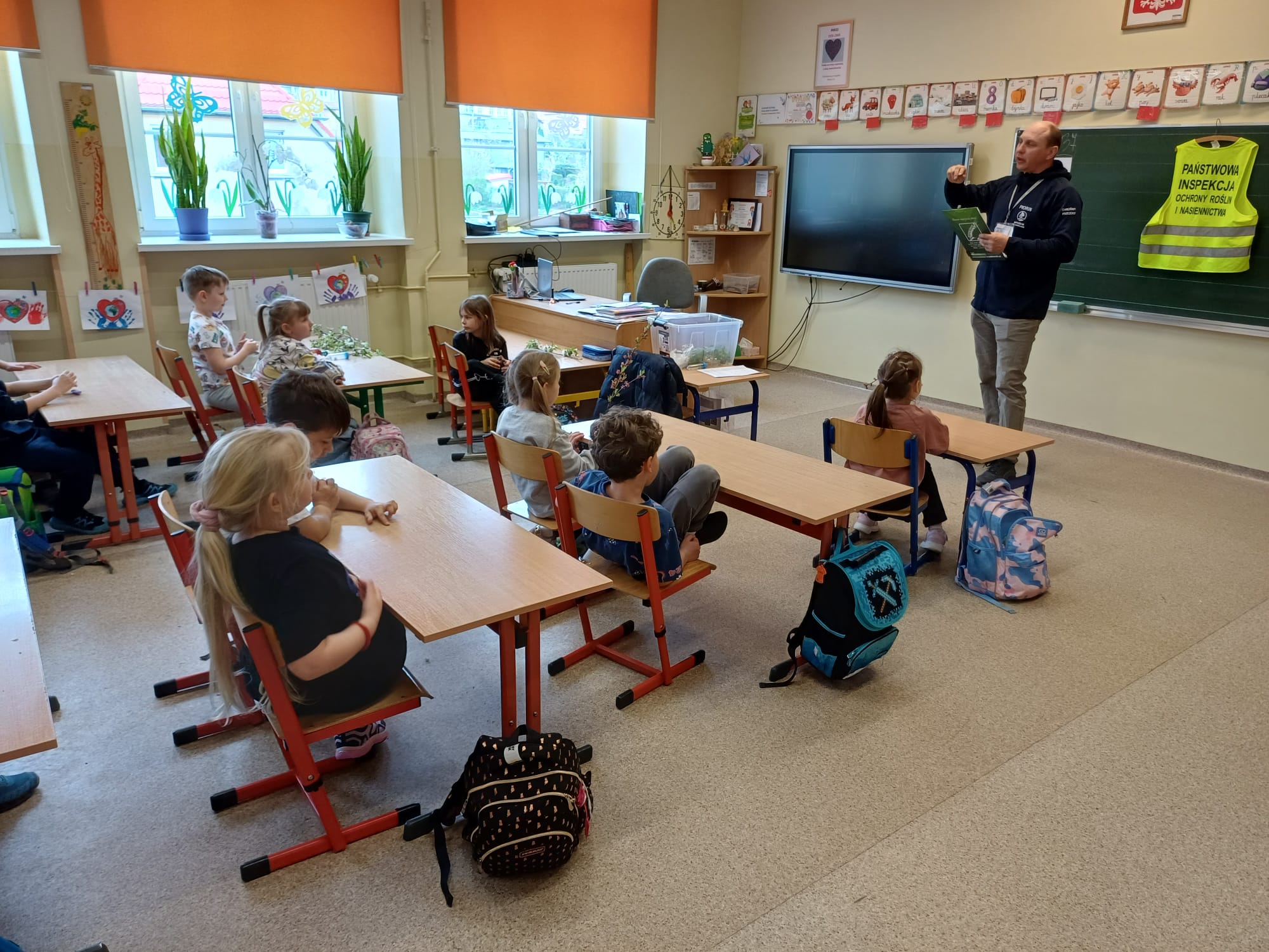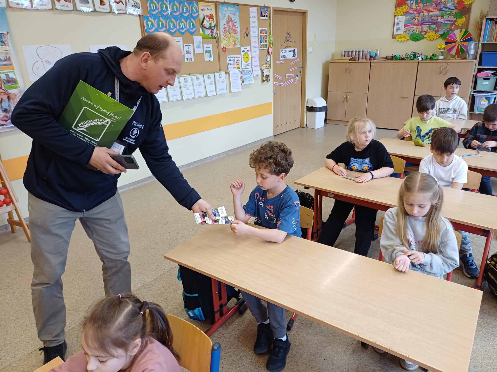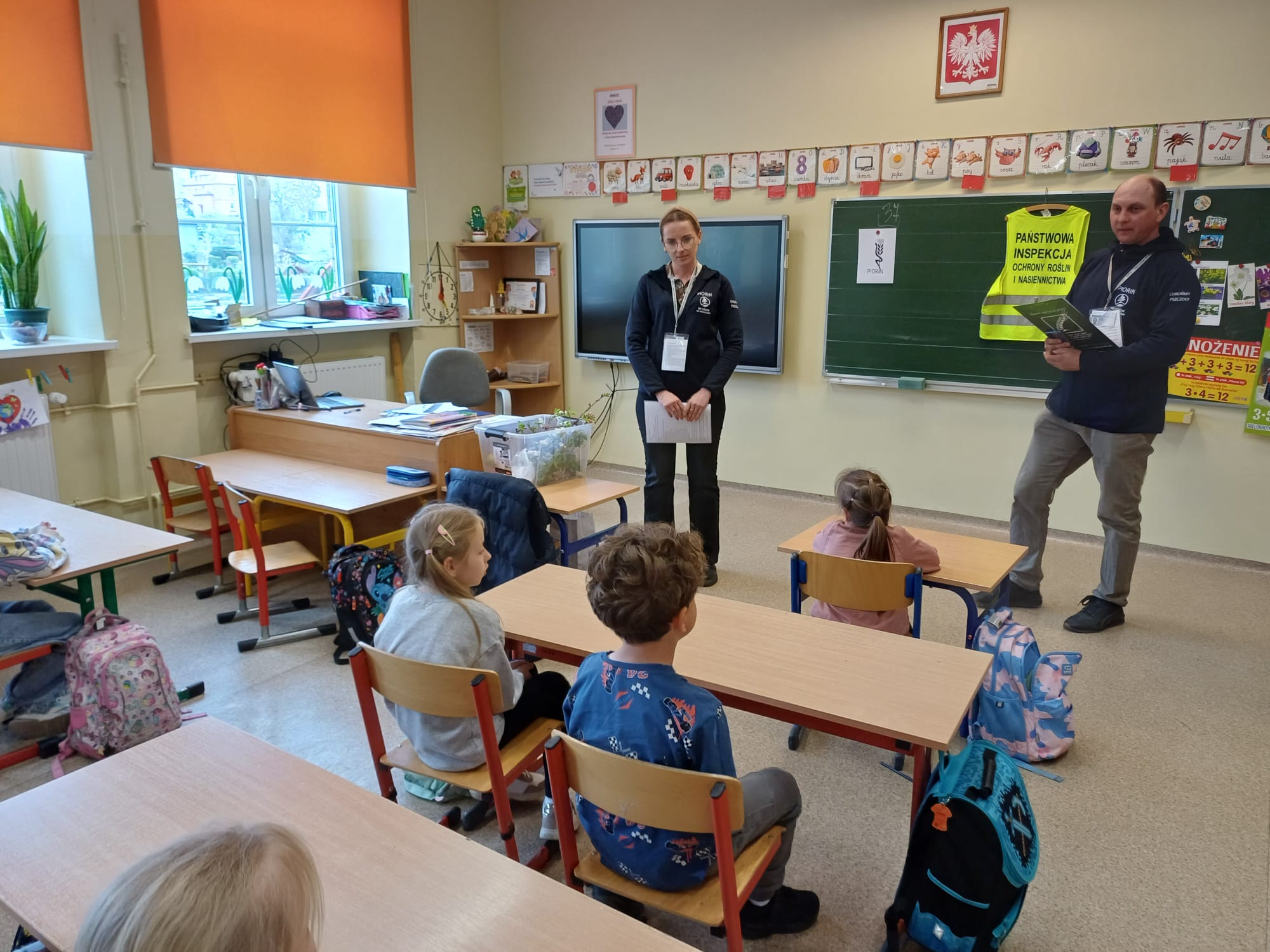 W ubiegły piątek, 24 kwietnia, klasę 1a odwiedzili wyjątkowi goście – pracownicy Wojewódzkiego Inspektoratu Ochrony Roślin i Nasiennictwa. Spotkanie odbyło się pod hasłem „Od ziarenka do owocu” i było fascynującą lekcją przyrody w praktyce. Eksperci w przystępny sposób przybliżyli uczniom cykl życia roślin. Kluczowym elementem opowieści była rola owadów zapylających, bez których nasze sady i pola nie mogłyby wydawać plonów. Uczniowie mieli okazję zobaczyć i dotknąć wielu ciekawych eksponatów.