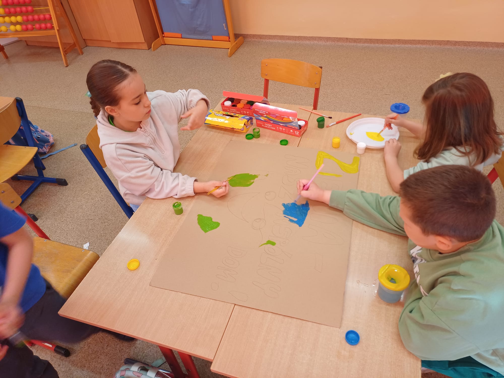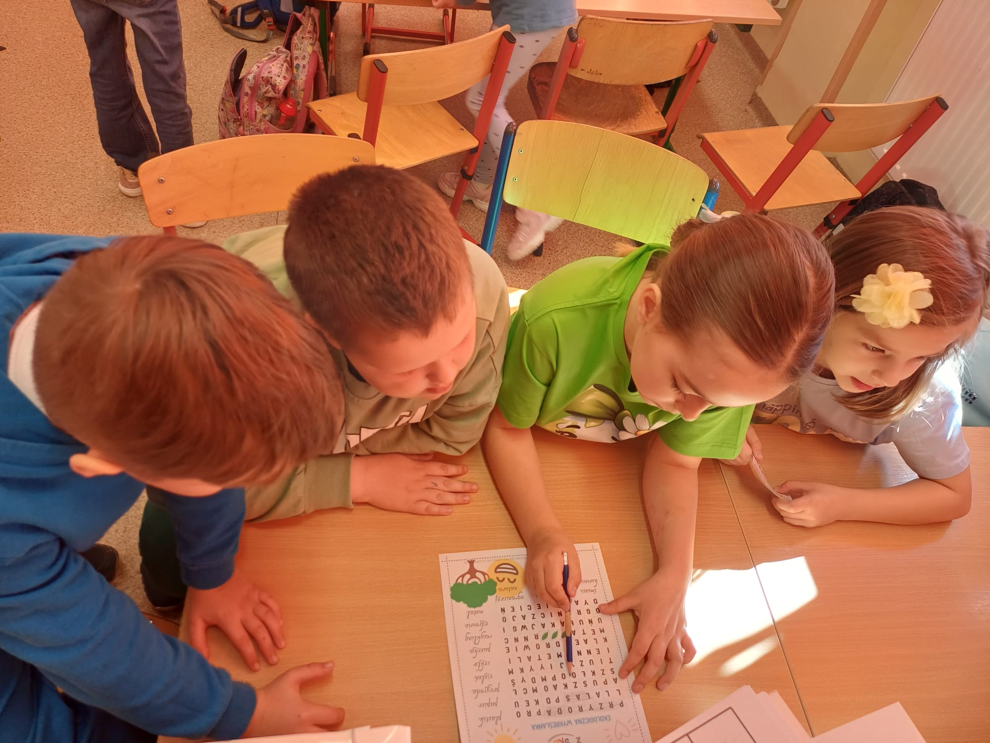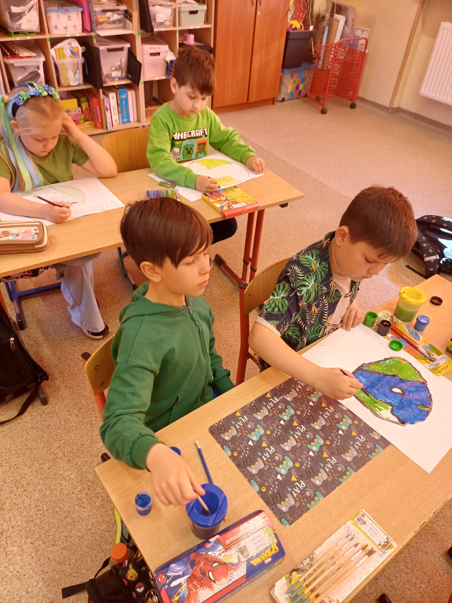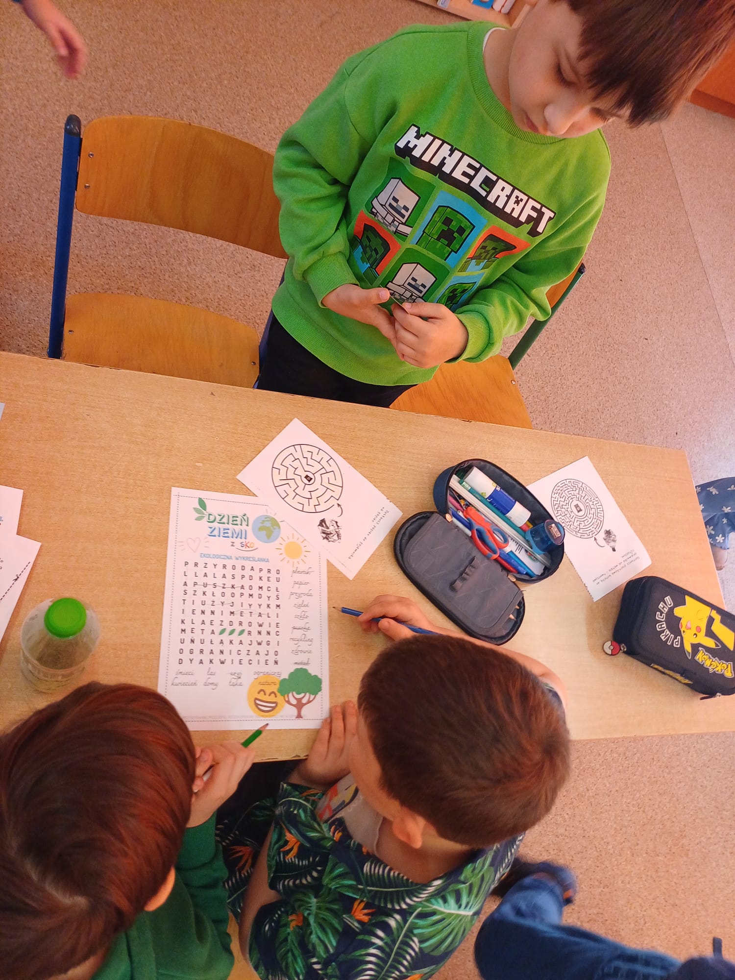 Dzień Ziemi w klasie 1a był pełen ekologicznych emocji i twórczej energii. Uczniowie rozpoczęli obchody od przygotowania barwnych opasek na głowę oraz haseł na autorskie plakaty, by następnie wziąć udział w pasjonującej grze zadaniowej pn. „Jak dbać o Ziemię z Gagatkiem i Gagatkoliną?”. Po solidnej dawce wiedzy i wspólnej zabawie, szkołę wypełniły dźwięki piosenki Majki Jeżowskiej „Moja planeta”, którą dzieci odśpiewały z wielkim zapałem.