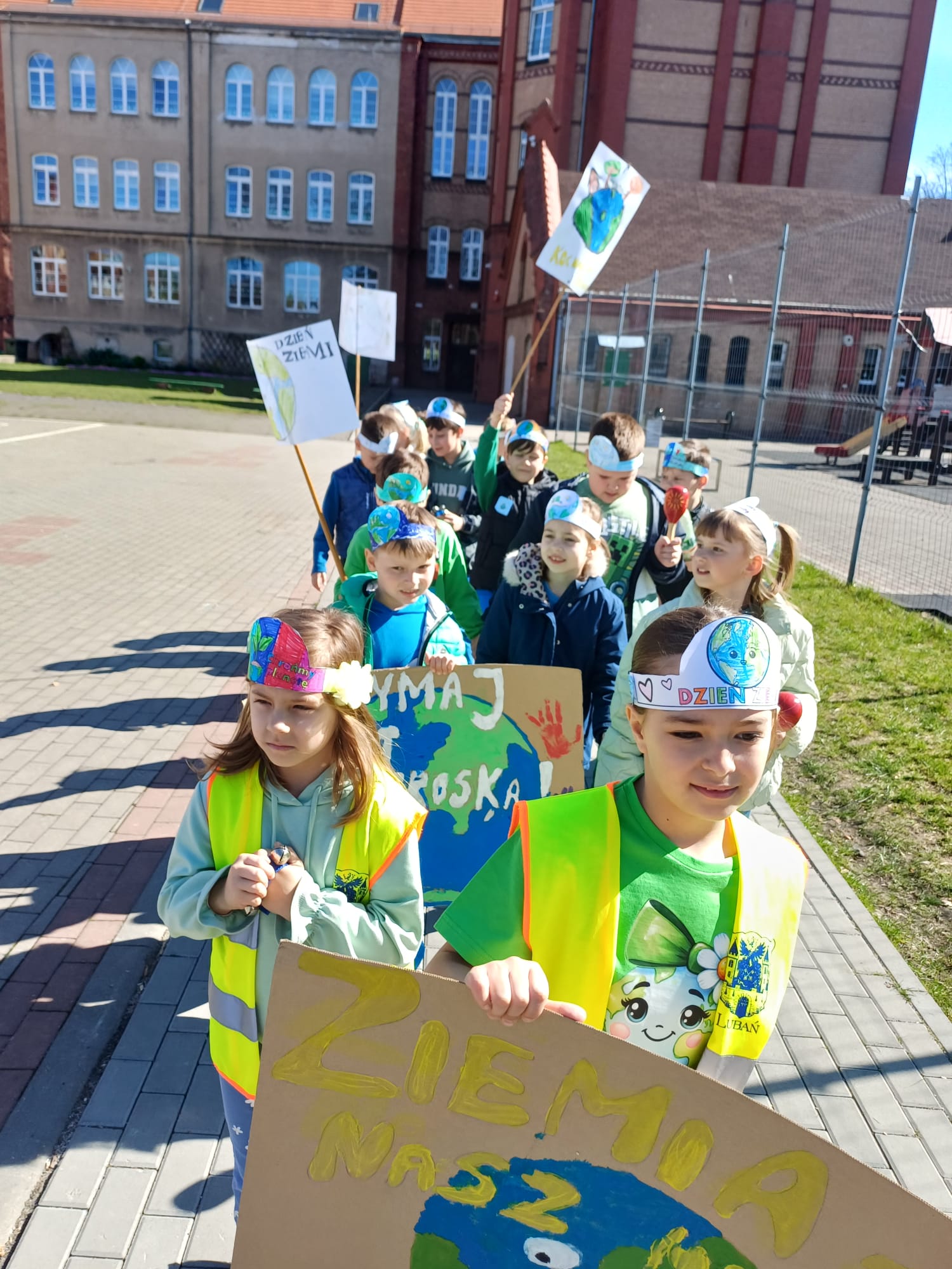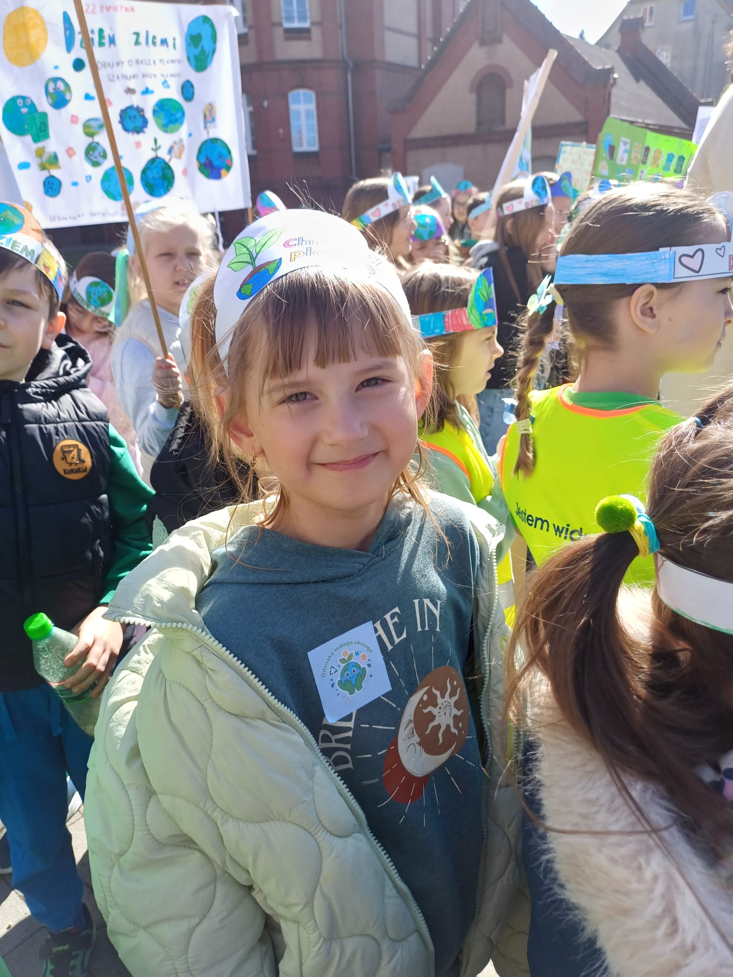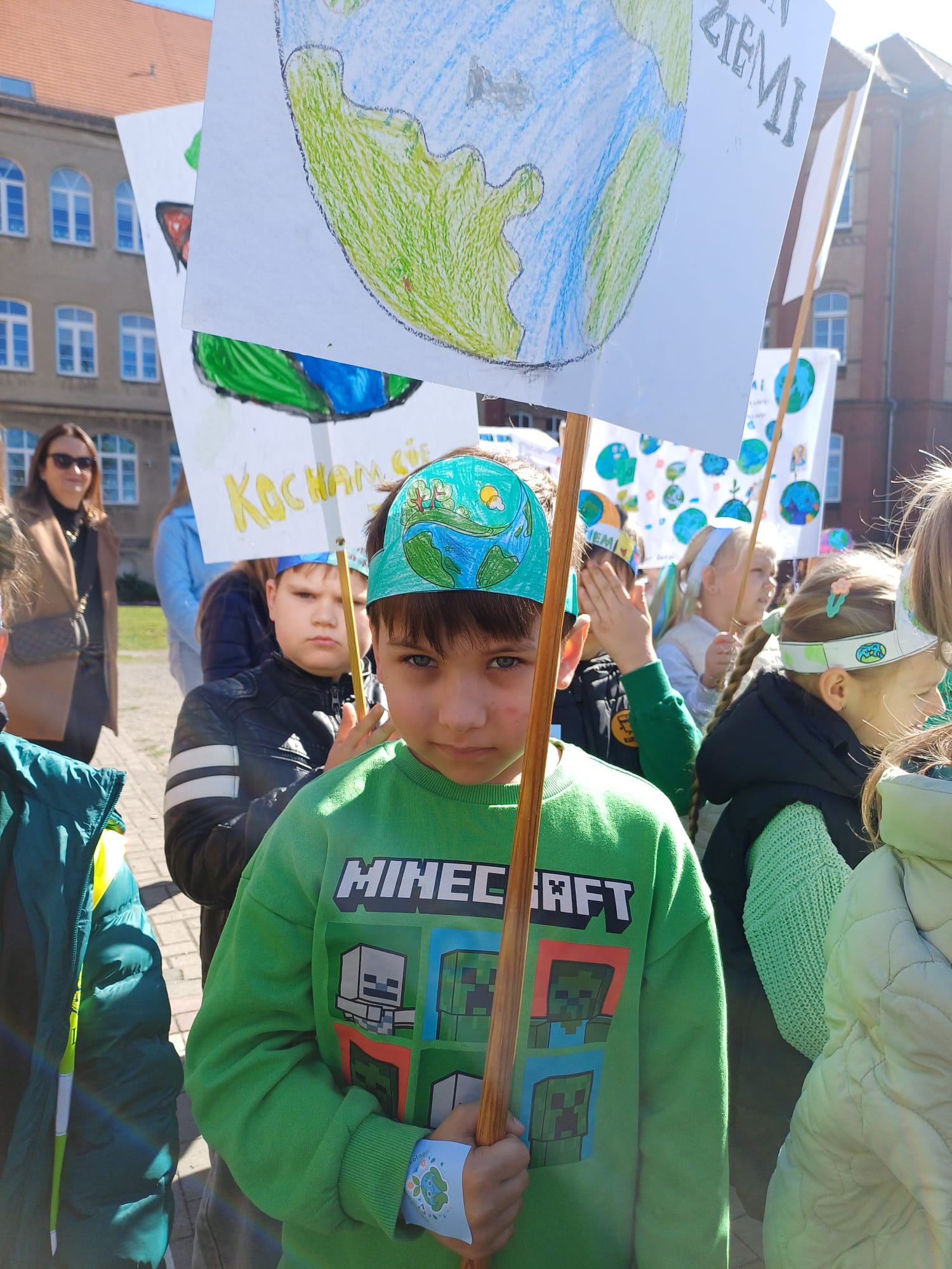 Zwieńczeniem tego wyjątkowego dnia był uroczysty przemarsz uczniów ulicami miasta na Plac Feliksa Netza i ponowne odśpiewanie piosenki „Moja planeta”! Klasa 1a jako grupa strażników planety jak zawsze aktywnie włączyła się w wydarzenie szkolne! To był fantastyczny „zielony dzień”!